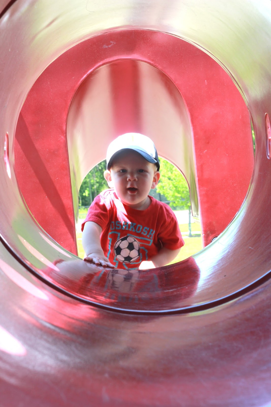 We met up with Jodie, Wally and the kiddos to play at Froggy Hollow today! It was a beautiful, sunny day, and the kids loved being outside and playing on all of the toys. Parker, however, hardly played on the toys...he instead played with the wood chips! Throwing them, putting them on the playground equipment and eating them! I just never understand what goes through his mind! What makes him want to eat wood? Some days he won't eat certain foods we give him...he puts them in and spits them out! But not wood chips! He would consume as many as we would let him if he had his way! Even when we got to the car, I took off his shoes and there was dirt and little pieces of wood chips stuck to his feet. He immediately started picking them off and eating them! I wonder if this is like when pregnant women crave dirt because they have low iron?! The pediatrician did say he has low iron, and we just started giving him iron drops so maybe that will help! Silly little boy!