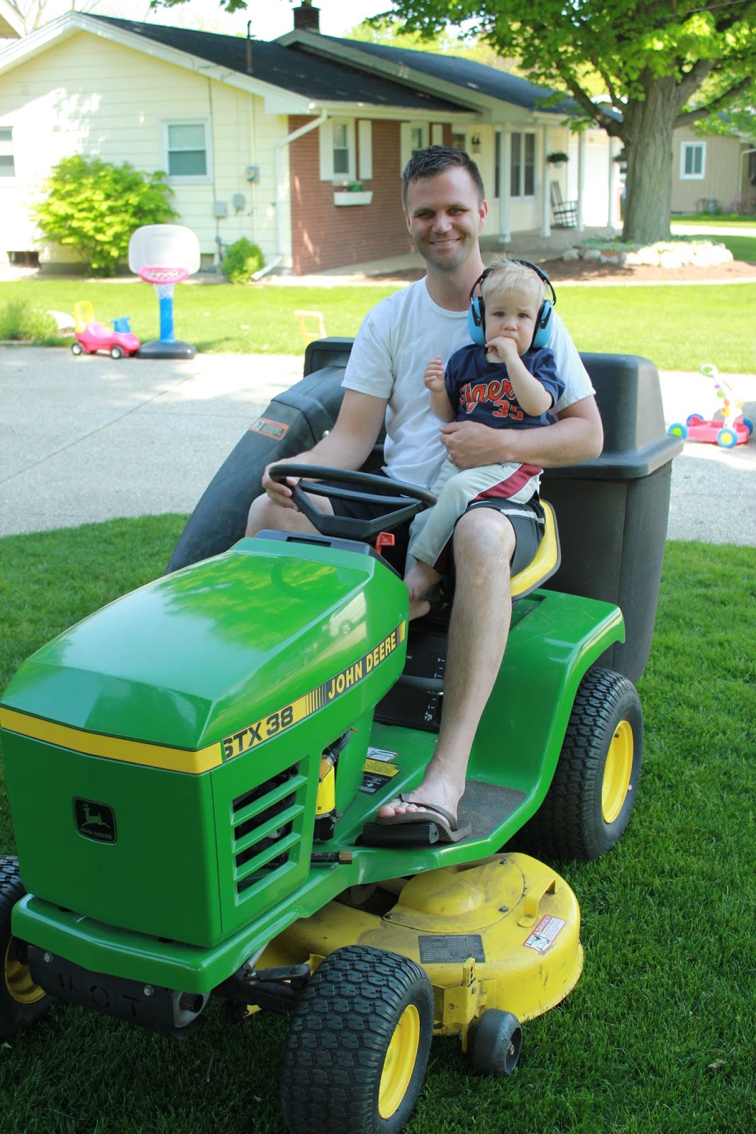 The love of the tractor continues...Sawyer just loves to ride with Joel